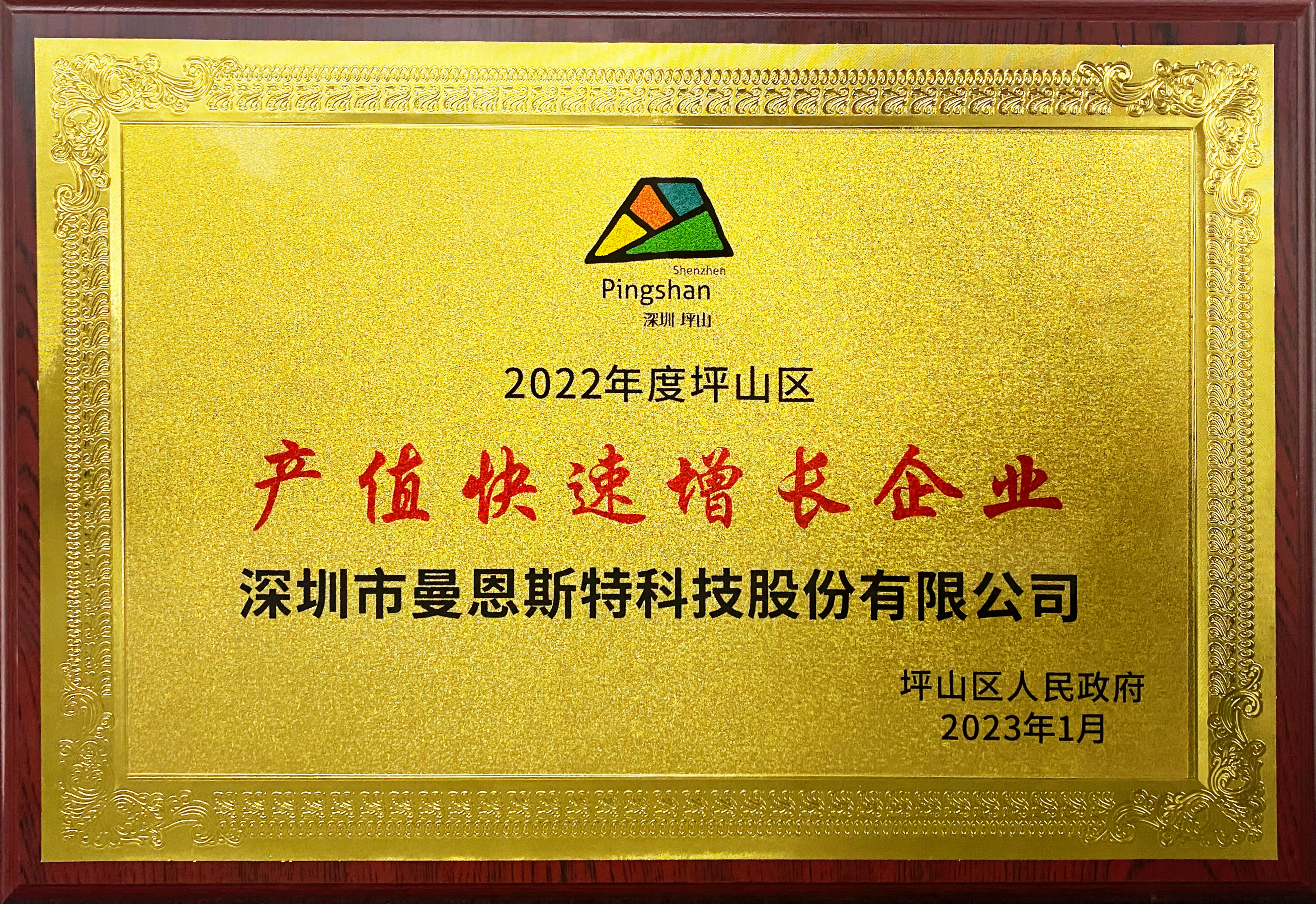 Awarded "2022 Pingshan District Output Value Rapid Growth Enterprise"